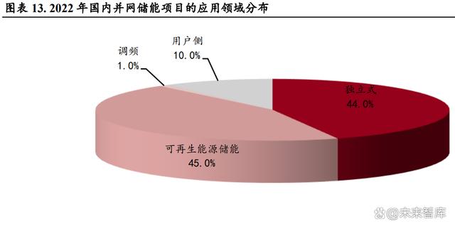 我國作為世界第一大儲能市場,應(yīng)用場景主要集中在發(fā)電側(cè)和電網(wǎng)側(cè)。從 2022 年已并網(wǎng)項目的應(yīng)用 領(lǐng)域來看,可再生能源儲能項目和獨立式儲能項目貢獻了絕大多數(shù)增量,分別占比達 45%和 44%, 用戶側(cè)儲能項目僅占比 10%,但其中還包括 3 個 10 小時鉛炭儲能項目。