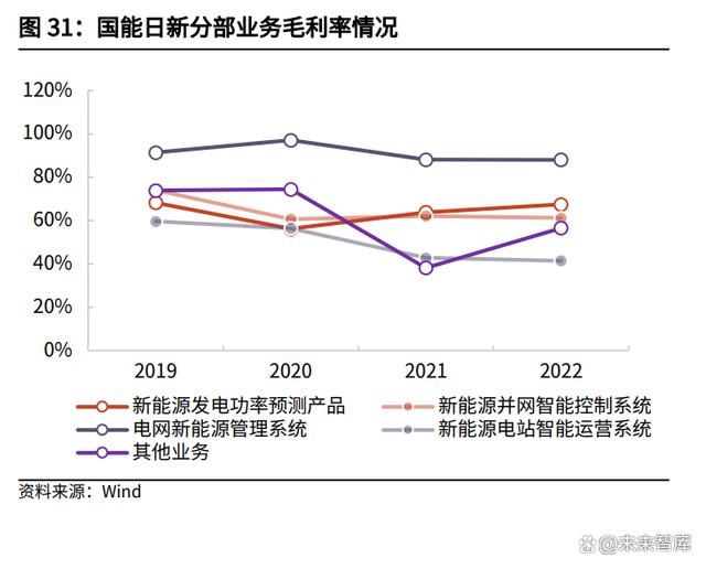 分部業(yè)務(wù)和毛利率微電網(wǎng)產(chǎn)品和系統(tǒng)業(yè)務(wù)持續(xù)發(fā)力,軟件產(chǎn)品逐步升級(jí)。公司于2020年變更分產(chǎn)品收入的統(tǒng)計(jì)口徑,其中電力監(jiān)控及變電站綜合監(jiān)控產(chǎn)品及系統(tǒng)、能效管理產(chǎn)品及系統(tǒng)、電量傳感器業(yè)務(wù)自2020年起均保持增長(zhǎng)。近年來(lái)企業(yè)微電網(wǎng)產(chǎn)品和系統(tǒng)業(yè)務(wù)(包括電力監(jiān)控及變電站綜合監(jiān)控產(chǎn)品及系統(tǒng)、能效管理產(chǎn)品及系統(tǒng)、消防及用電安全產(chǎn)品及系統(tǒng)、企業(yè)微電網(wǎng)-其他)占營(yíng)業(yè)收入的比重近90%,毛利率均維持在45%以上,整體經(jīng)營(yíng)和盈利能力較為穩(wěn)定。未來(lái)隨著公司系統(tǒng)產(chǎn)品的逐漸升級(jí),軟件業(yè)務(wù)占比有望逐步提高,進(jìn)而帶動(dòng)盈利能力提升。