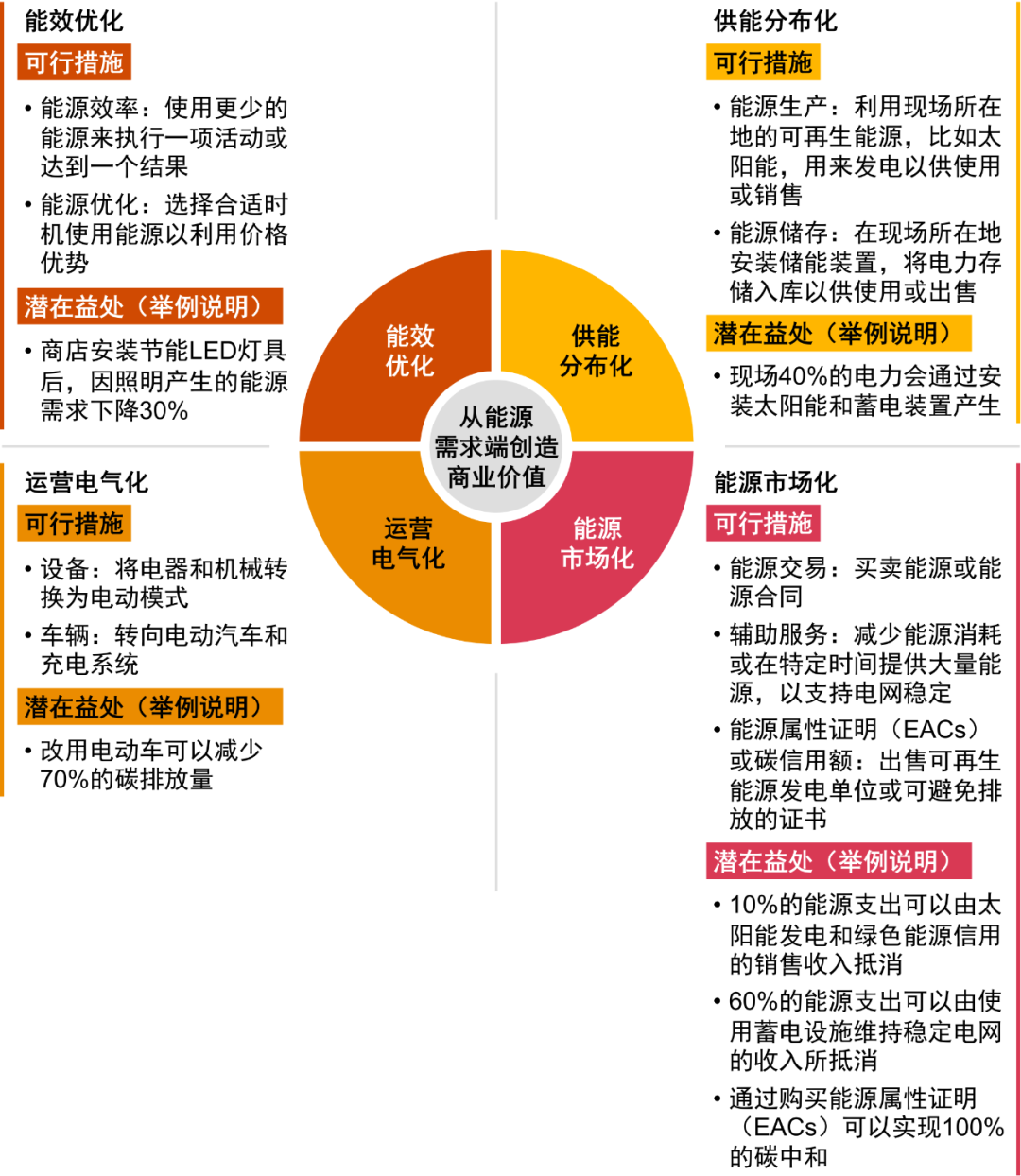 本文將從能源需求端為您提供創(chuàng)造商業(yè)價(jià)值的四種途徑,以期為企業(yè)能源轉(zhuǎn)型戰(zhàn)略布局和實(shí)踐提供參考。