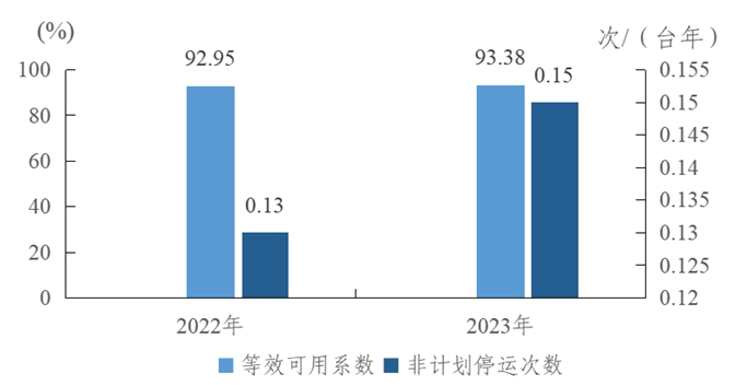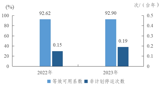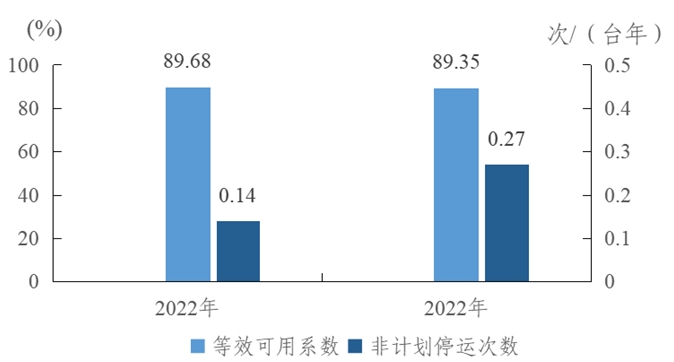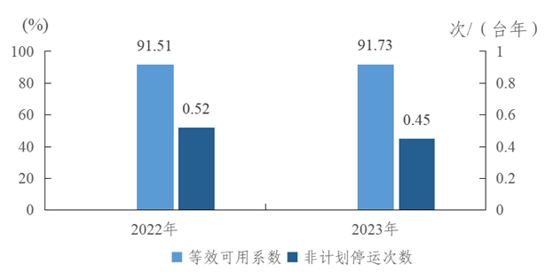 圖2 2022-2023年燃煤機組主要運行可靠性指標