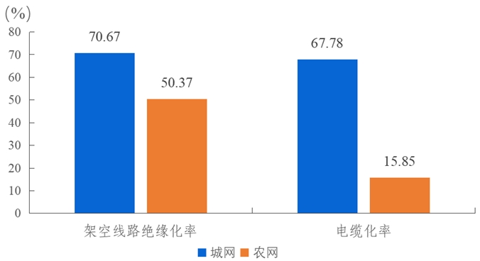 圖15 2023年城網、農網線路絕緣化率、電纜化率