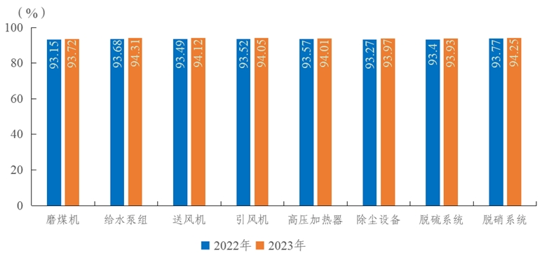 圖3 2022-2023年燃煤機組八類輔助設備可用系數