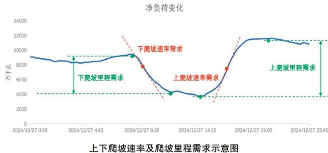 爬坡速率和里程是表征瞬時和持續(xù)爬坡需求及能力的核心指標。爬坡是指為應(yīng)對可再生能源發(fā)電波動等不確定因素帶來的系統(tǒng)凈負荷短時大幅變化,具備較強負荷調(diào)節(jié)速率的并網(wǎng)主體根據(jù)調(diào)度指令調(diào)整出力,以維持系統(tǒng)功率平衡所提供的服務(wù),可分為上、下爬坡兩類。上爬坡需求難以滿足時可能引發(fā)切負荷或頻率越限等問題,下爬坡需求難以滿足時可能導致棄風棄光。本文針對系統(tǒng)瞬時和持續(xù)爬坡問題分別從爬坡速率和爬坡里程兩方面開展分析,其中爬坡速率需求是指凈負荷每分鐘變化的最大值,爬坡里程需求則是指凈負荷日內(nèi)最大連續(xù)上升/下降值。
