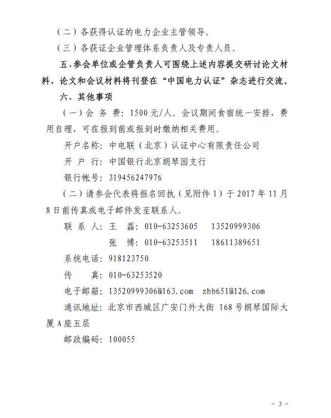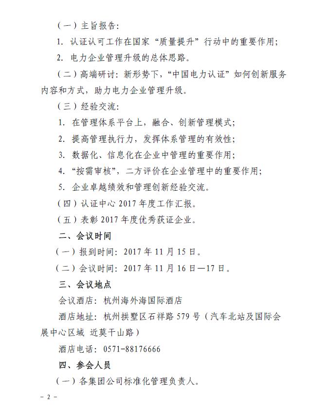 關(guān)于召開“2017年度電力認(rèn)證工作年會(huì)暨‘中國(guó)電力認(rèn)證’助力電力企業(yè)管理升級(jí)研討會(huì)”的通知