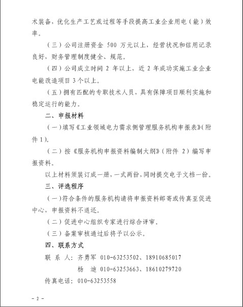 關(guān)于征集工業(yè)領(lǐng)域電力需求側(cè)管理服務(wù)機構(gòu)的通知