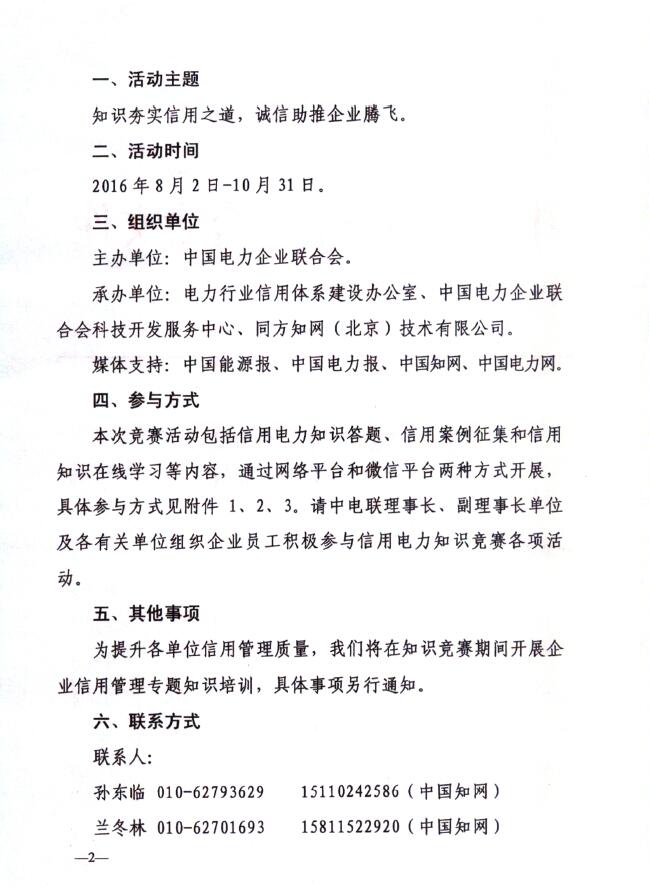 為進一步落實中共中央、國務院《關于進一步深化電力體制改革的若干意見》(中發(fā)〔2015〕9號),深化《社會信用體系建設規(guī)劃綱要(2014-2020年)》精神,普及信用知識,提升電力行業(yè)從業(yè)人員誠信意識,結合國家有關部委對信用體系建設工作的最新要求,中國電力企業(yè)聯(lián)合會攜手清華同方知網(wǎng),再次強強合作,共同舉辦2016“信用電力”知識競賽活動。
